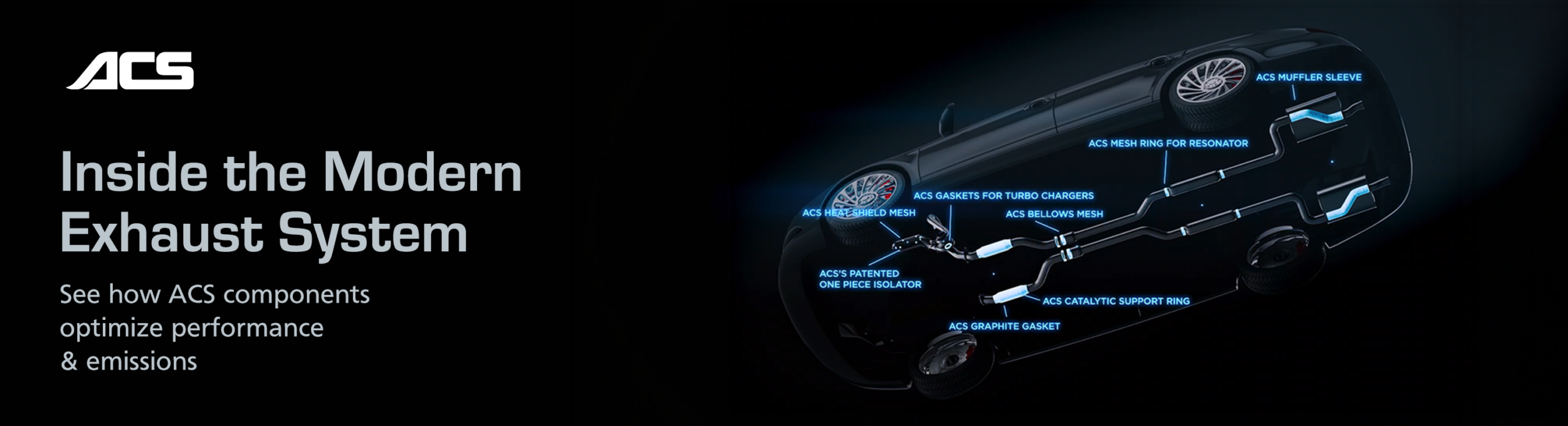 This animated overview walks through the full exhaust system, from the manifold to the tailpipe, highlighting eight critical ACS components and the performance challenges they are designed to solve: